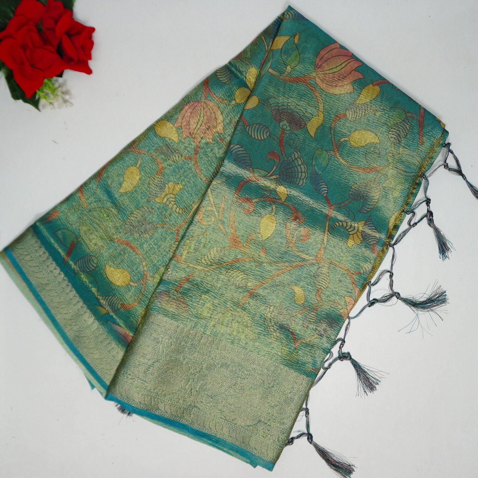 Fabric :Penkalamkari Tissue Pattu Crushed