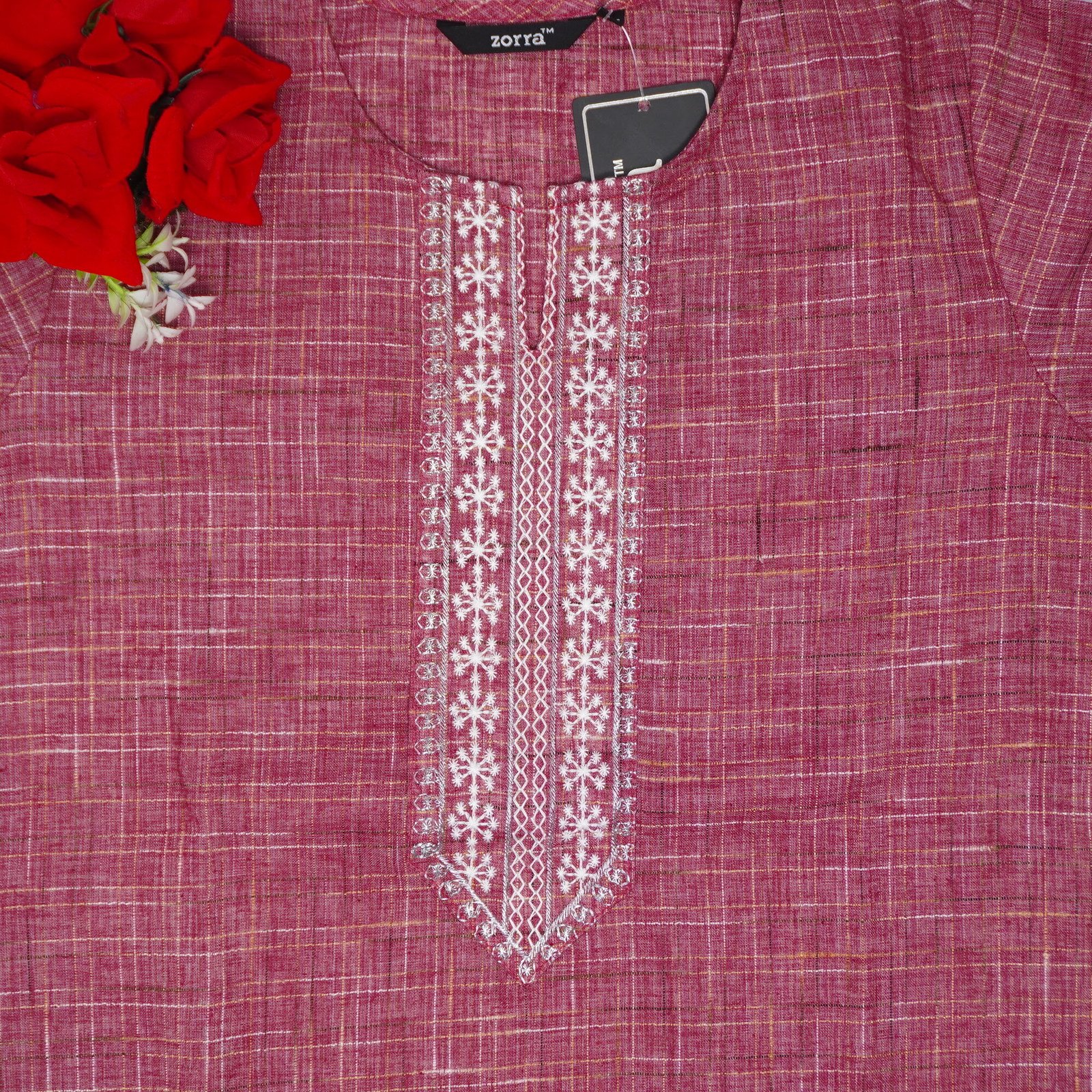 Rayon Stright Cut Work Pocket Tops -MB198(Onion Pink)