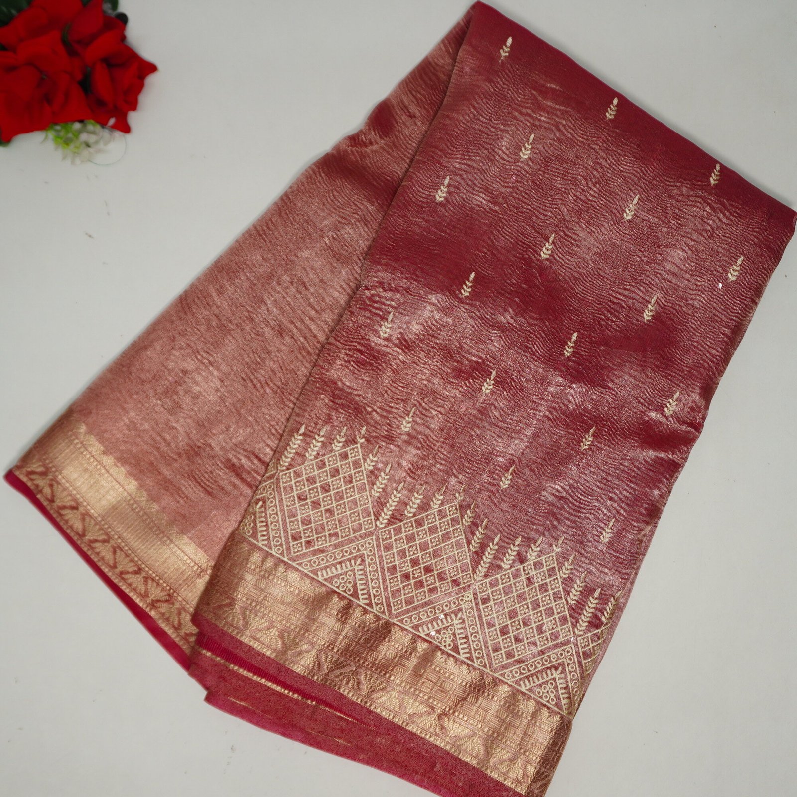 Fabric : Tissue Pattu With Mirror Work